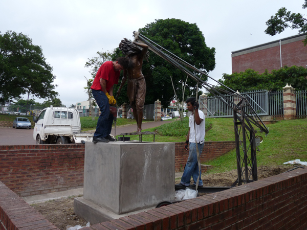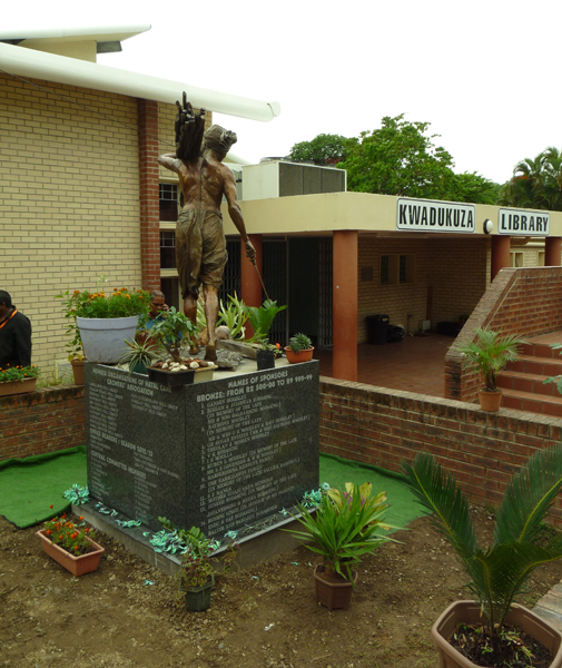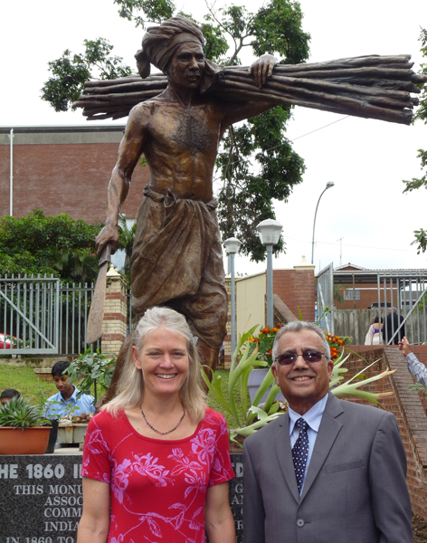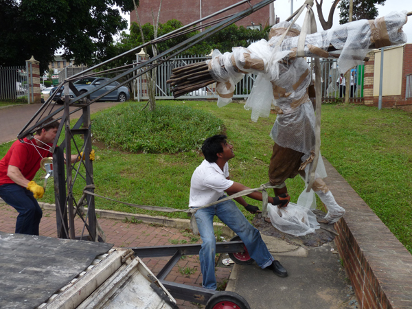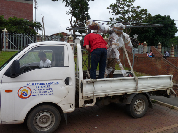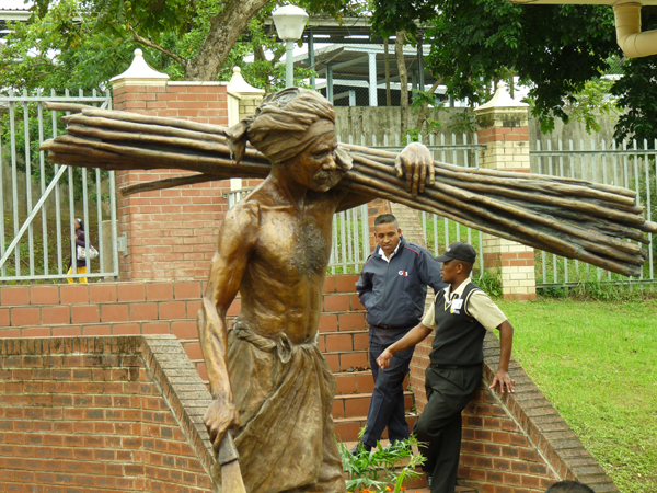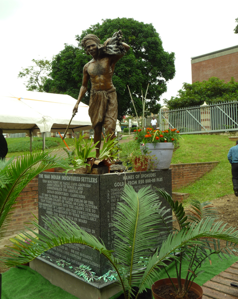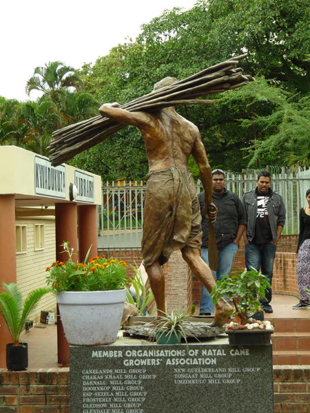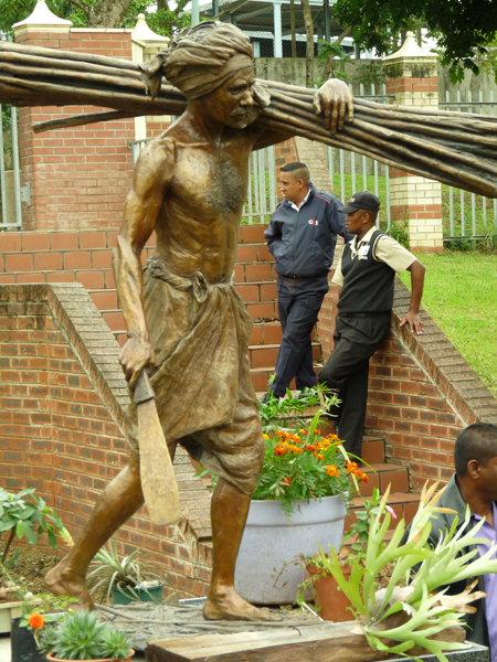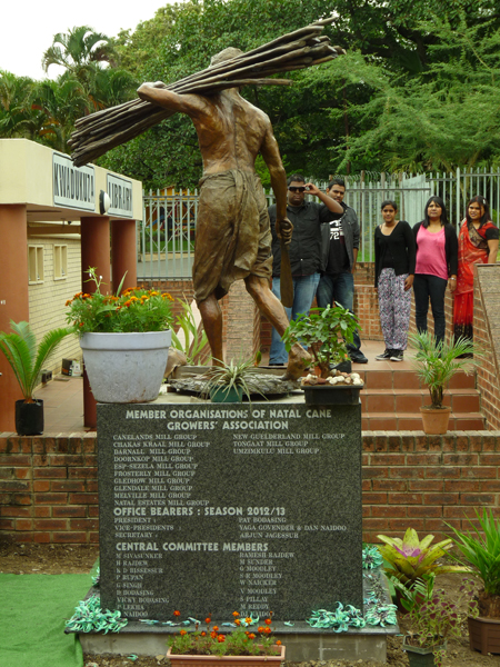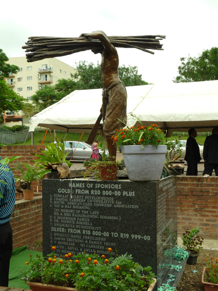 This sculpture was commissioned by the Natal Cane Growers Association, to be placed at the KwaDukuza library in Stanger. The sculpture commemorates the courage and fore-site of the Indian indentured labourers brought to Natal in 1860, 152 years ago, to work in the cane fields. These men and women built a community from nothing; educating and creating business, while fulfilling their contract to the Cane owners who shipped them to South Africa. The community in Stanger now have a monument to remind and educate the youth of today about their origins.