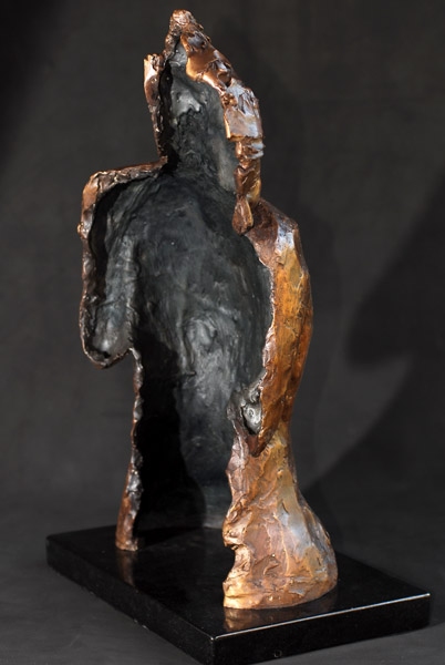 This sculpture is a free standing relief. The viewer can see the inside of the sculpture. Ideal for placement against a wall.