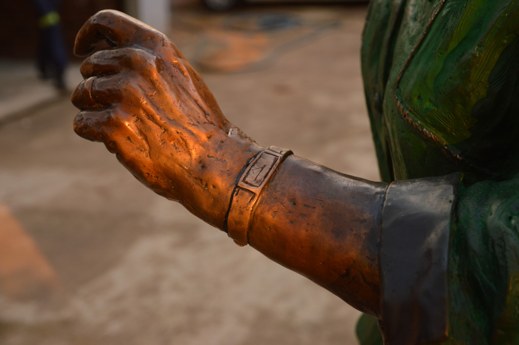 The sculpture is part of the Long Walk to Freedom parade of over 100 bronze sculptures. Commissioned by The National Heritage Project View-able by public at Century City, Cape Town.