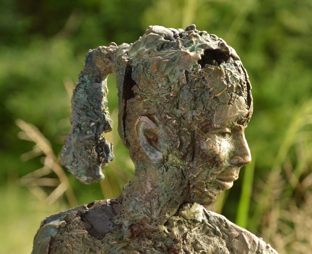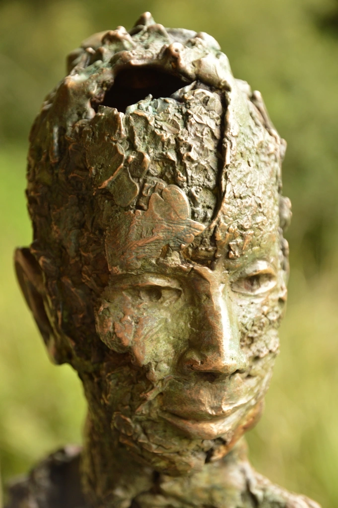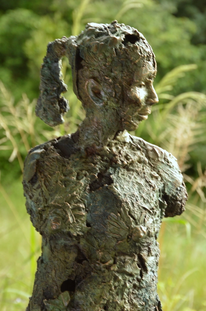 This sculpture merges human with nature. We are one and the same, part of the natural ebb and flow of creation and decay. Just as a forest is fed by the decaying leaves and trees, the great circle of life.