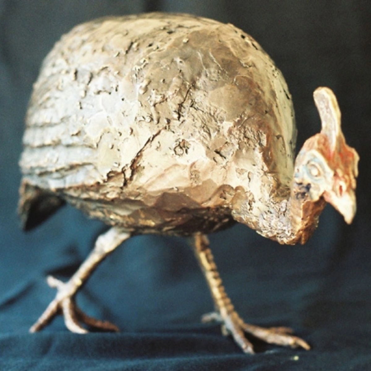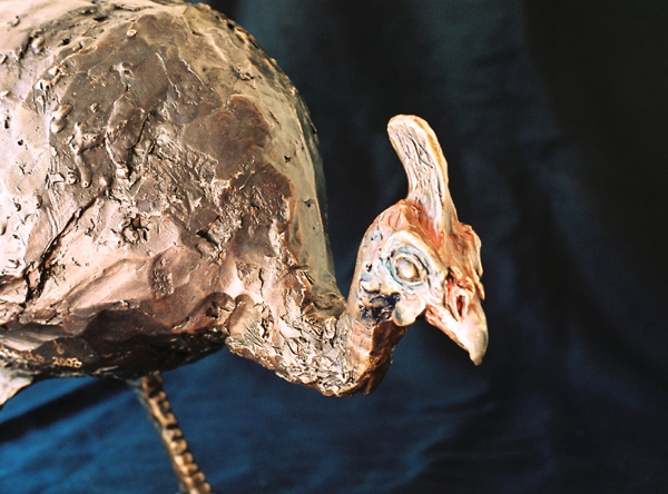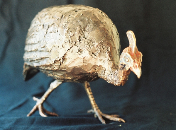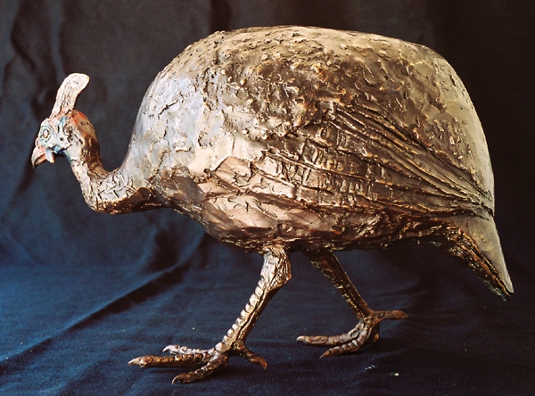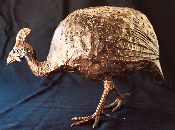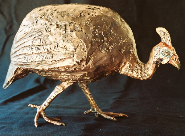 They chose the Helmeted Guineafowl, commonly seen throughout South Africa. The sculpture depicts the bird 2/3 of its natural height. A touch of colour in the face shows off the unusual features of the Guineafowl.