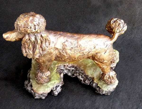 Poodles can have such a haughty attitude, giving them a real presence in people lives. The poodle I modeled this on is a favourite pet in the family, ruling the roost over all the other dogs, no matter that they are bigger.