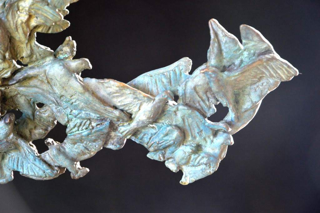 This sculpture is the 1st in a new body of work. The work explores my connection to nature, or the flow of energy found in the natural world, the search for the source of energy that gives me life. It is also a search for some essence within myself which I find hard to explain or represent. As I find it ,it is lost – like a bird that fly’s off just as one sees it.