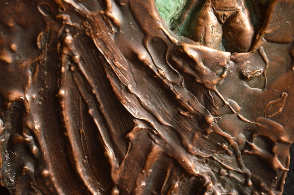This small panel was one of the 1st I created. Playing with options, and exploring my ideas in wax. Relief has always interested me. A surface that is 2D and 3D at the same time. Inner spaces and outside textures. There is an element of chance in the creating, and control in the execution. And who knows what will happen when it is cast into bronze. These is no mould, so no second chance.