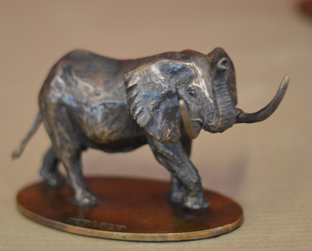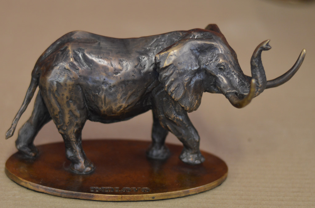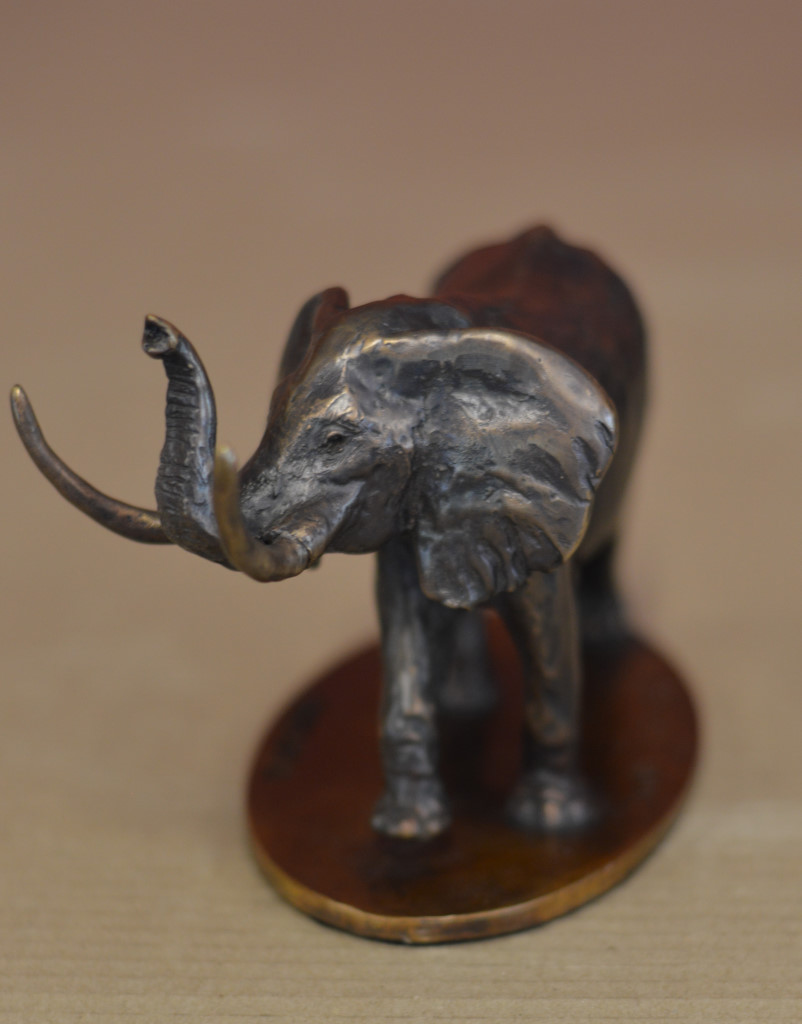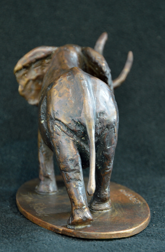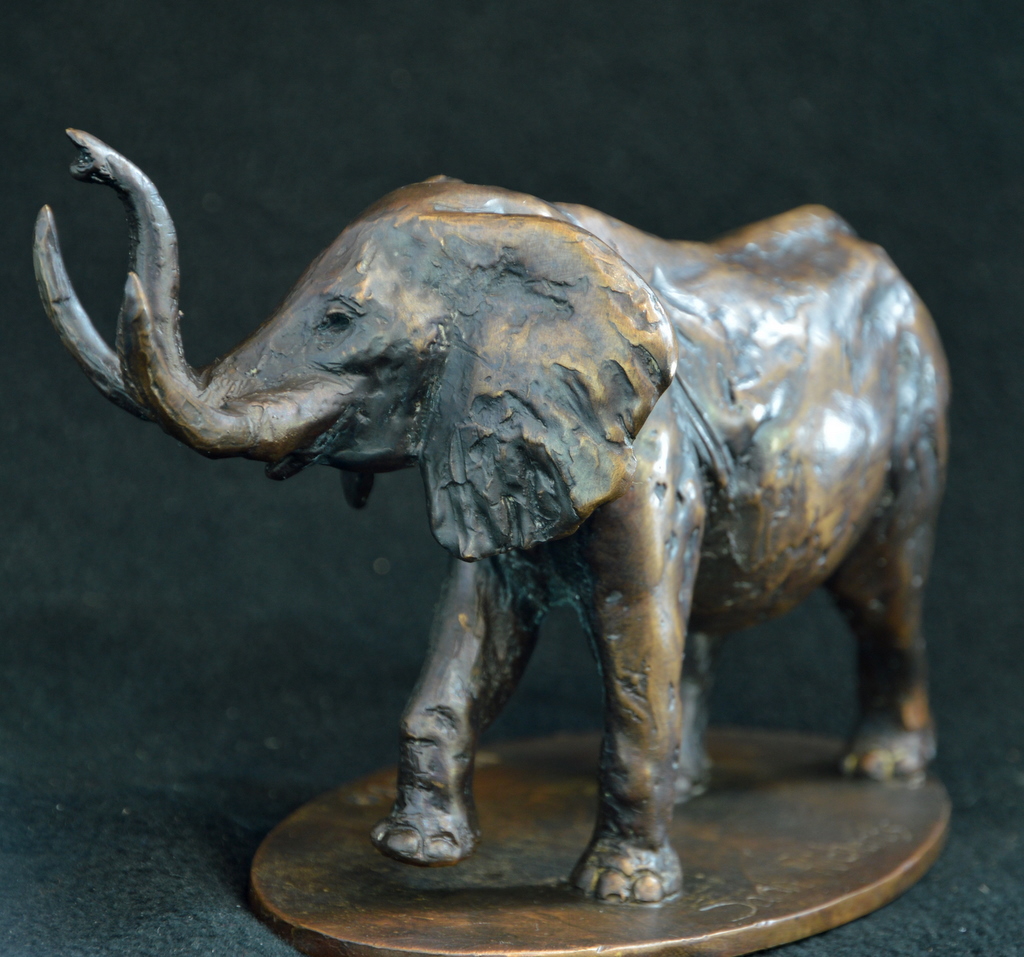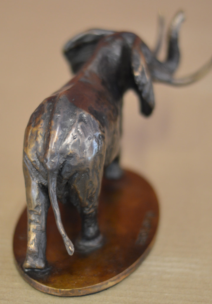 This small bronze Elephant is designed as a small gift or collectable. Light and small enough to go in a suitcase for international travelers. It is an unlimited edition and orders for copies of this sculpture are welcome. There could be a 2 - 4 week delay while your order is cast at the foundry.